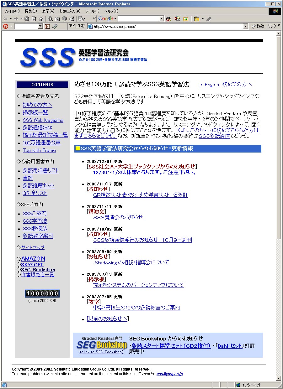 なお、SSSのWEBPAGEが開設されたのは、2001年7月30日、掲示板が開設されたのは2001年10月30日、
