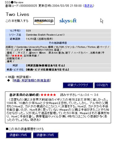 その1冊、1冊の詳細な情報がこの画面から見ることができます。自分の好みにあった本を探したり、レビューを登録したり、ご活用ください。