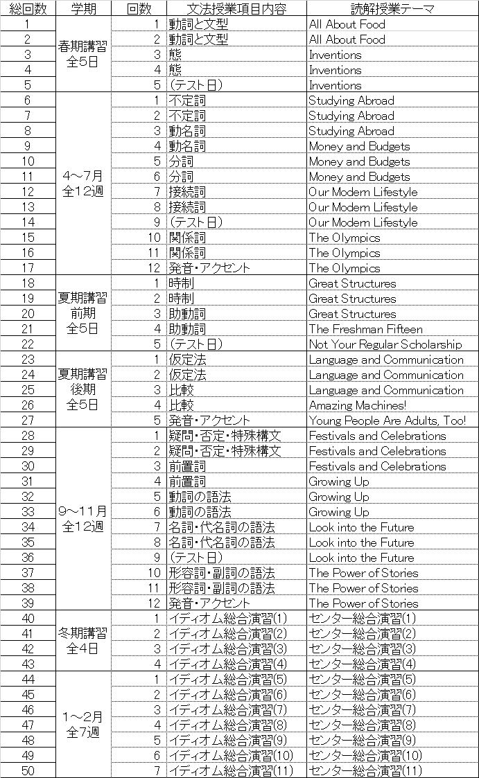 高2英語多読B クラス 進度予定表