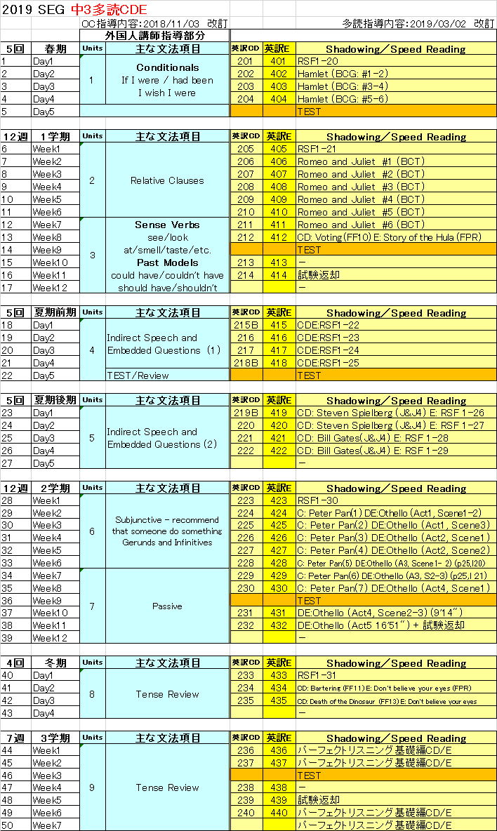 【クラス名称】 中3英語多読C(基礎) 中3英語多読D(中級) 中3英語多読E(上級) 英語多読多聴R(基礎〜上級)