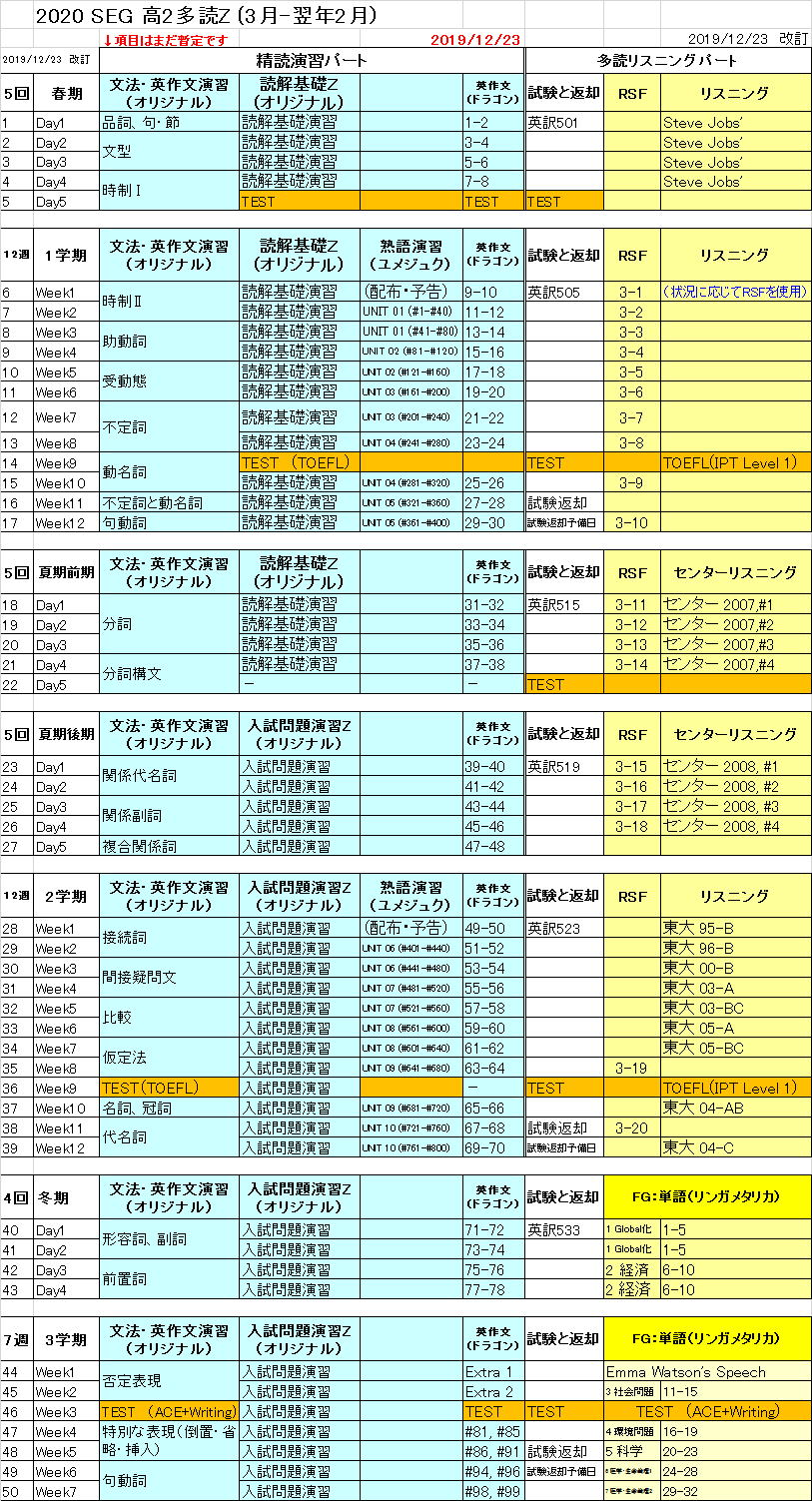 高2多読Zの進度表 高2多読Yの進度表 高2多読のページに戻る