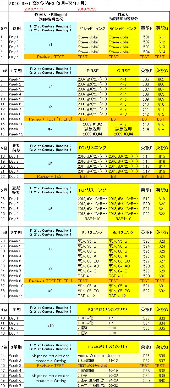 高2多読FG進度予定表